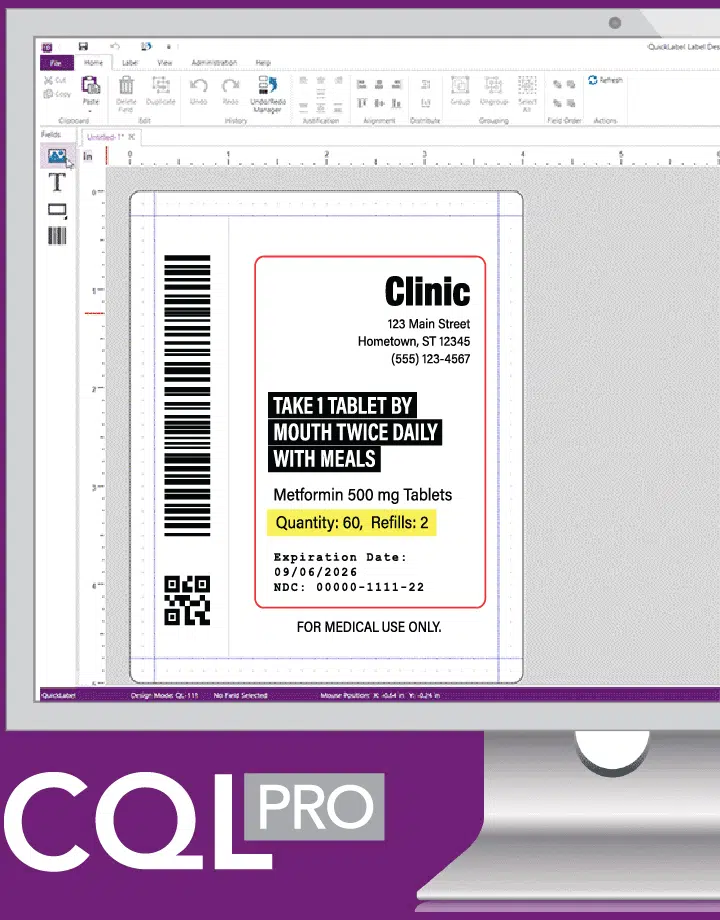 To complement our label printers, we offer CQL Pro Software, a cutting-edge tool for seamless vial, syringe, ampule and pill bottle label creation. From barcodes and lot tracking to bold brand graphics and regulatory information, CQL Pro makes it simple to produce labels that stand out and scan perfectly.